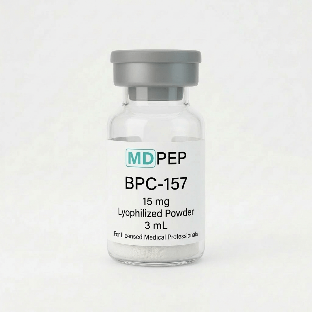 This vial contains BPC-157 supplied at a strength or concentration of 15 mg and is manufactured in a 503B FDA-registered outsourcing facility in accordance with high quality standards. This product is intended for use by qualified healthcare providers in a clinical setting.