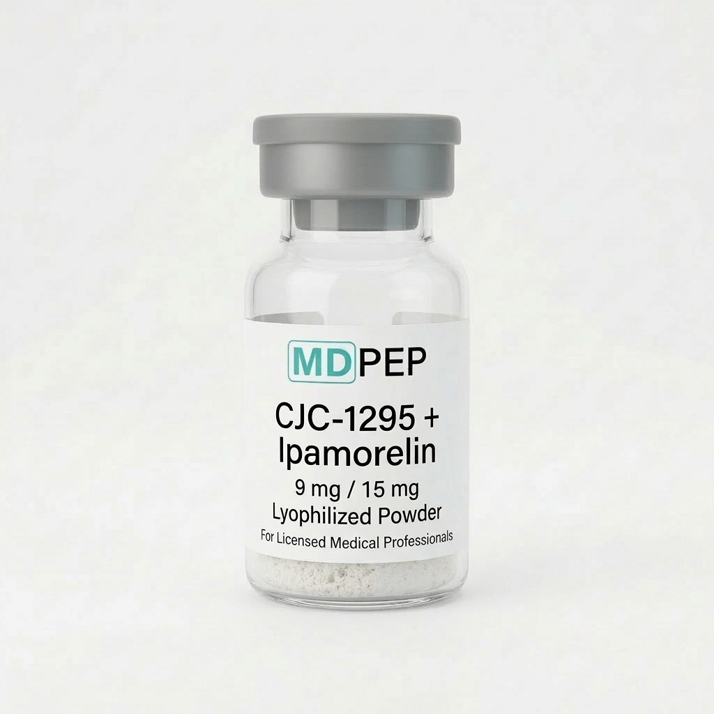 This vial contains CJC-1295 + Ipamorelin supplied at a strength or concentration of 9 mg / 15 mg and is manufactured in a 503B FDA-registered outsourcing facility in accordance with high quality standards. This product is intended for use by qualified healthcare providers in a clinical setting.