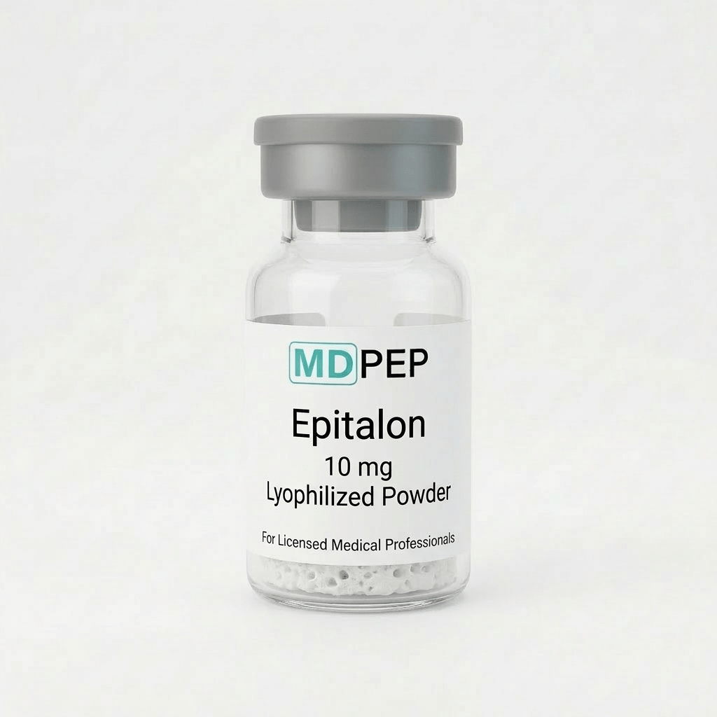 This vial contains Epitalon supplied at a strength or concentration of 10 mg and is manufactured in a 503B FDA-registered outsourcing facility in accordance with high quality standards. This product is intended for use by qualified healthcare providers in a clinical setting.