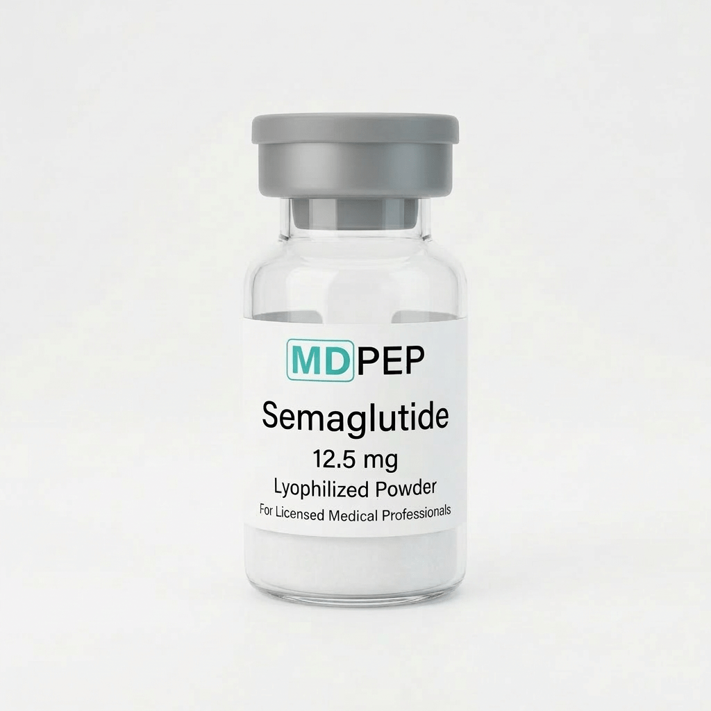 This vial contains Semaglutide supplied at a strength or concentration of 12.5 mg and is manufactured in a 503B FDA-registered outsourcing facility in accordance with high quality standards. This product is intended for use by qualified healthcare providers in a clinical setting.