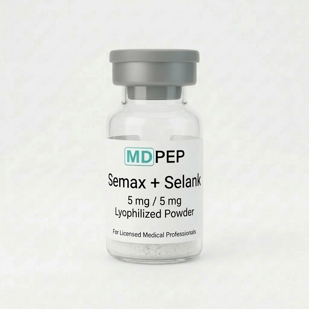 This vial contains Semax + Selank supplied at a strength or concentration of 5 mg / 5 mg and is manufactured in a 503B FDA-registered outsourcing facility in accordance with high quality standards. This product is intended for use by qualified healthcare providers in a clinical setting.